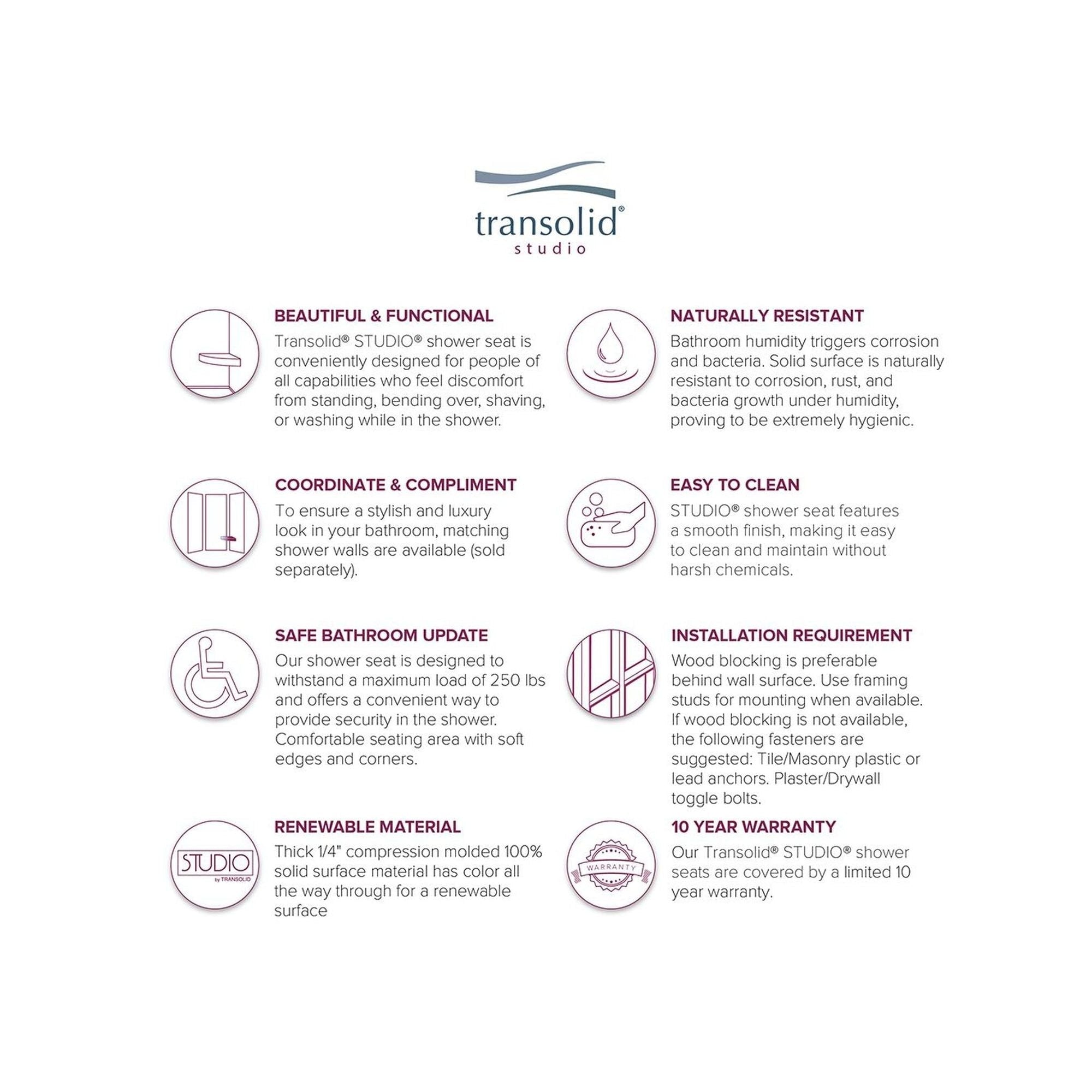 Siège de douche d'angle mural en surface solide Transolid Studio 14 po x 14 po - 14,5 x 14,25 x 3 -