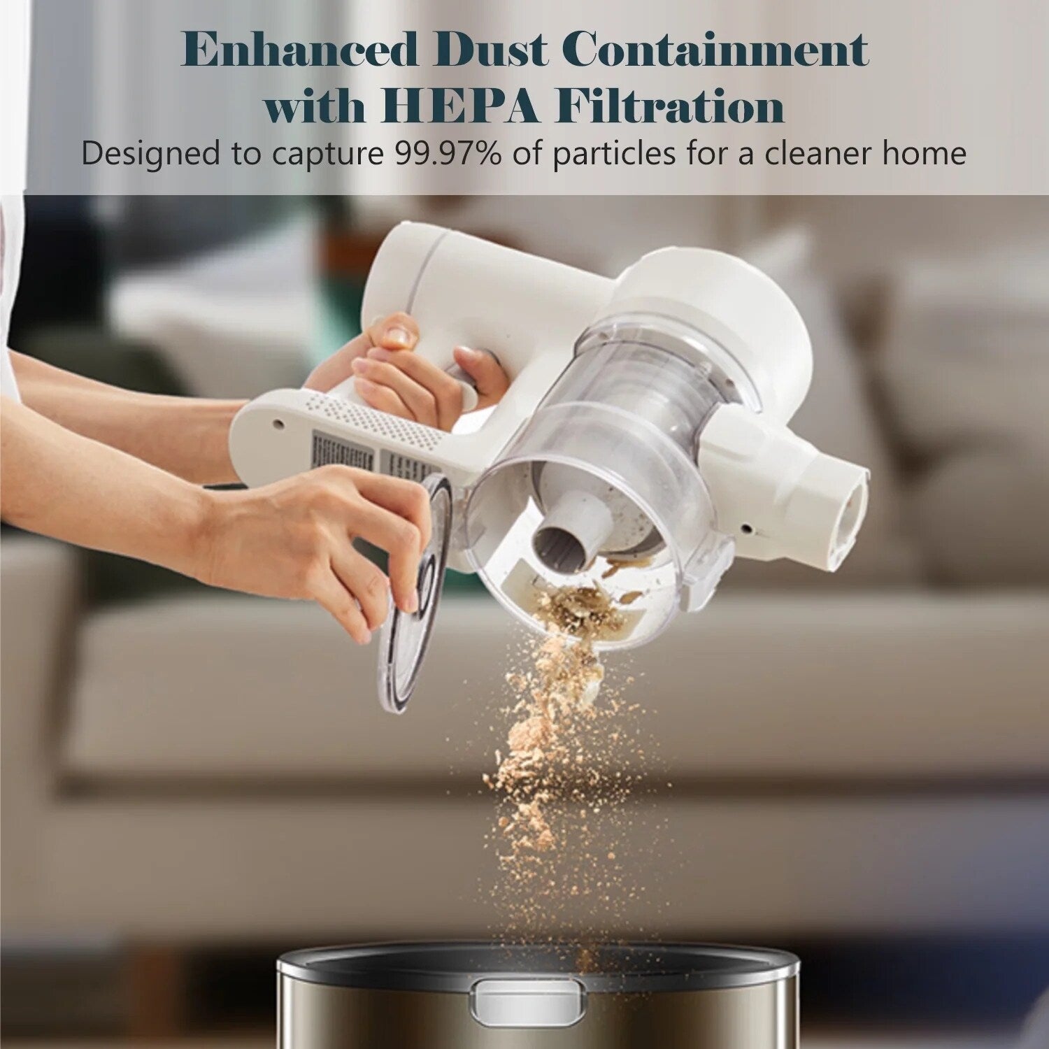 - Filtration HEPA : Comprend un système cyclonique scellé avec un filtre HEPA pour piéger la poussière et les allergènes, ainsi qu'un vidage du bac à poussière en une seule touche.