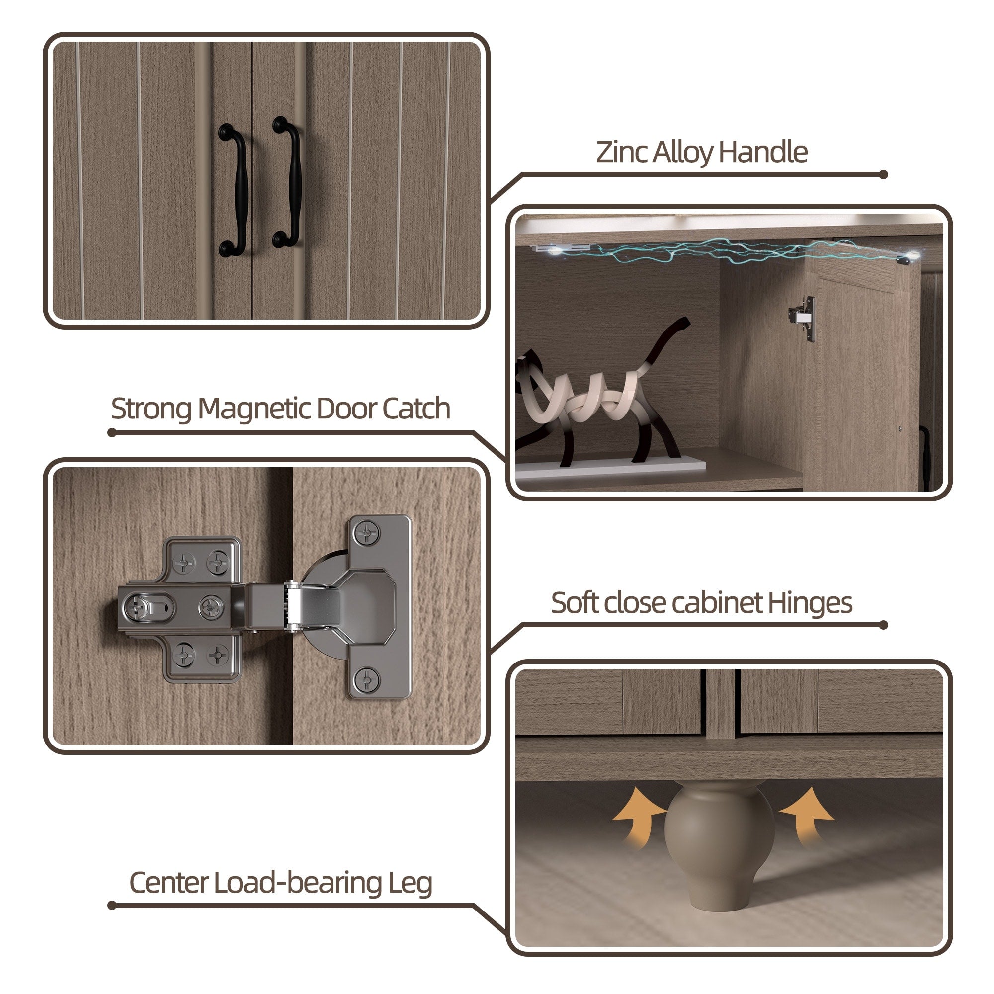 Ce buffet sera un excellent choix pour votre intérieur. Conçu en MDF et doté de pieds en bois, il est durable et résistant à l'eau. Ce meuble comprend 4 portes pour ranger vos ustensiles de cuisine et autres bibelots. Vous pouvez également retirer l'étagère pour ranger vos objets encombrants. Rester organisé n'a jamais été aussi simple.