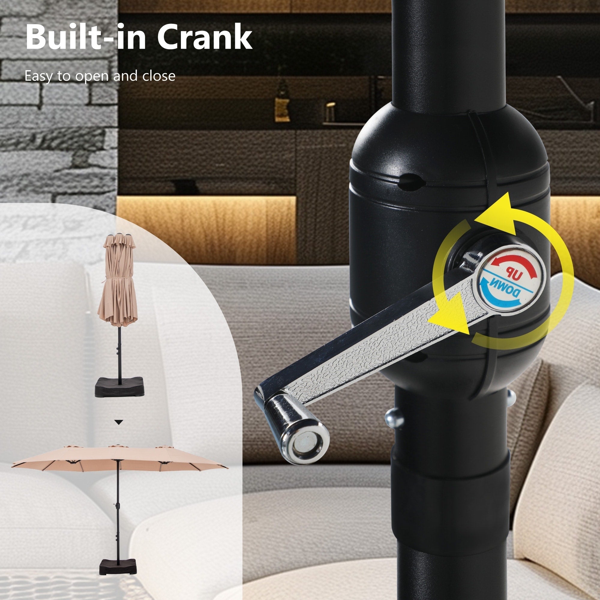 Parasol double extra large de 15 pieds pour patio double face de MAISON ARTS avec base incluse