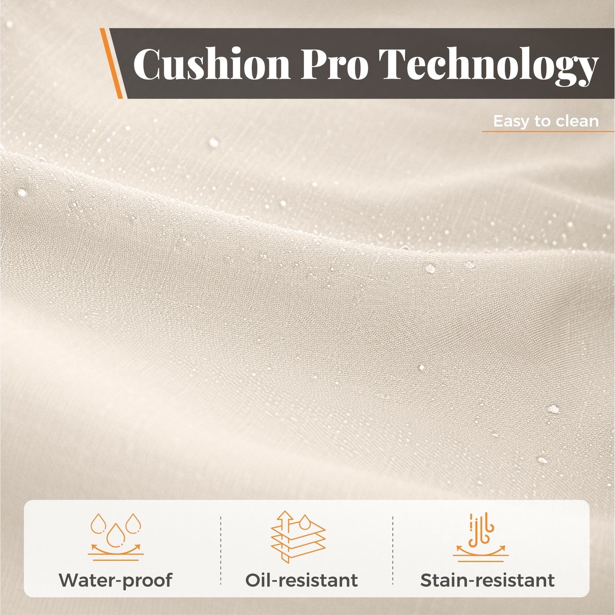 - Le coussin beige de 2,7', combiné à des housses résistantes à l'eau, aux taches et aux couleurs durables, offre une sensation plus confortable.
