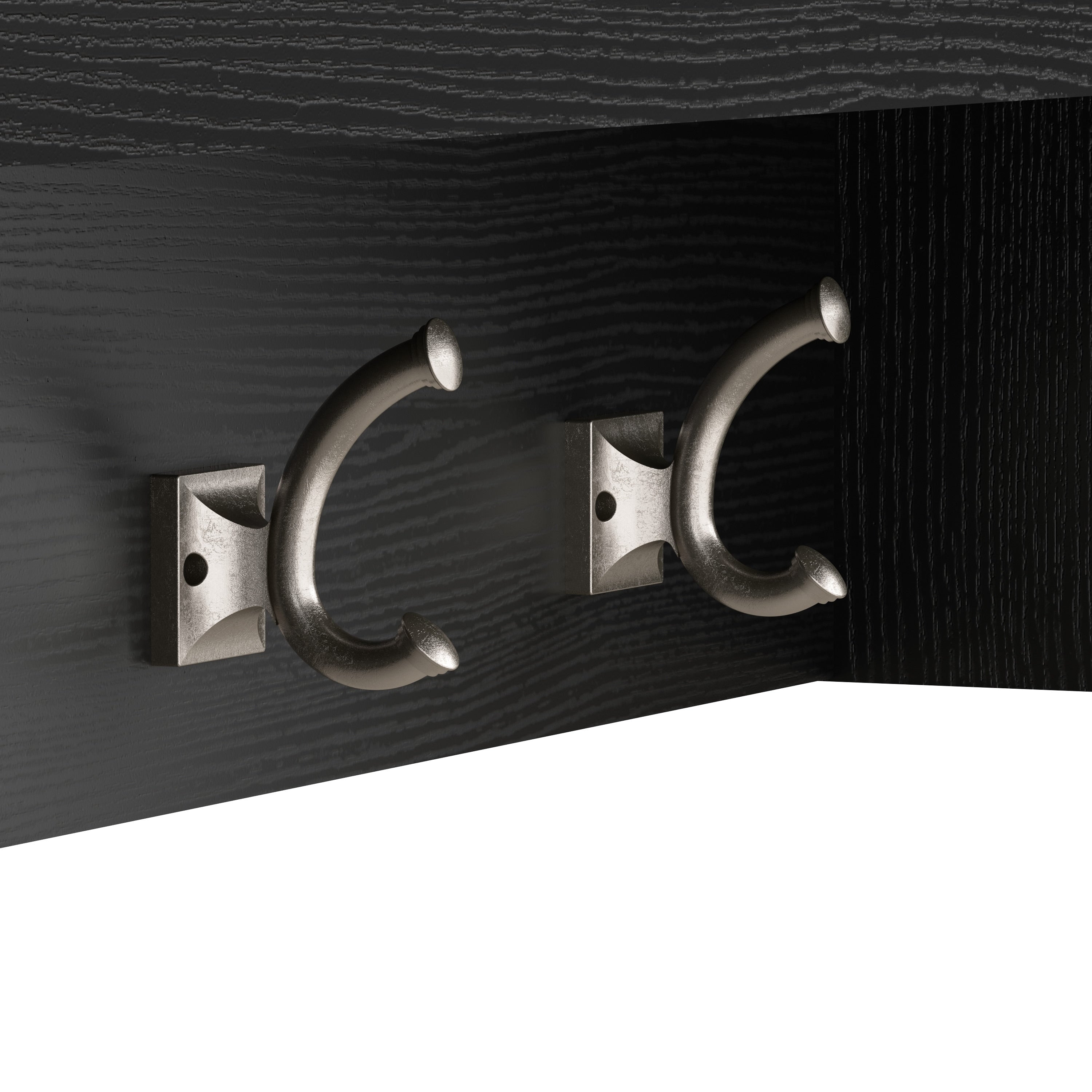 - L'étagère murale comprend quatre crochets à double broche à l'avant et un de chaque côté pour accrocher des vestes, des chapeaux, des écharpes et plus encore